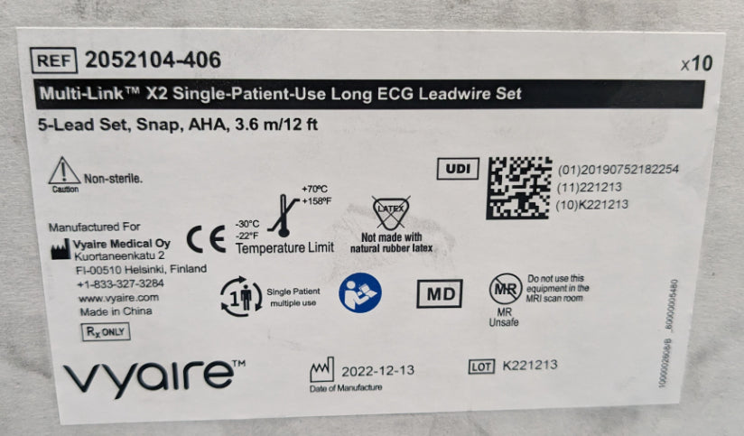 2052104-406 VYAIRE Multi Link X2 SIngle Patient Use Long ECG Leadwire Set