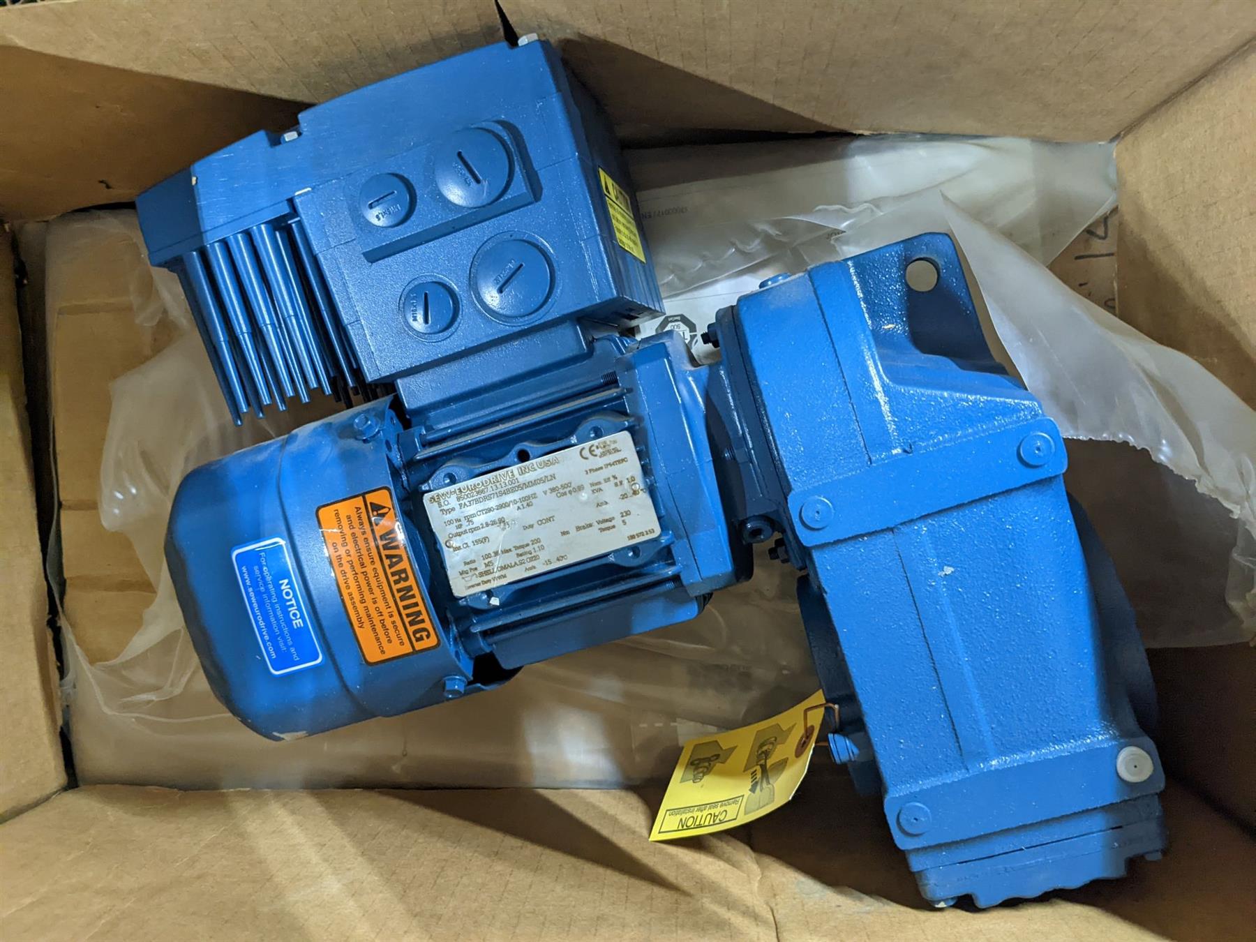 SEW Eurodrive Gear Motor 0.75 HP 3 Phase 100Hz 380-500V FA37BDRS71S4BE05/MM05/LN