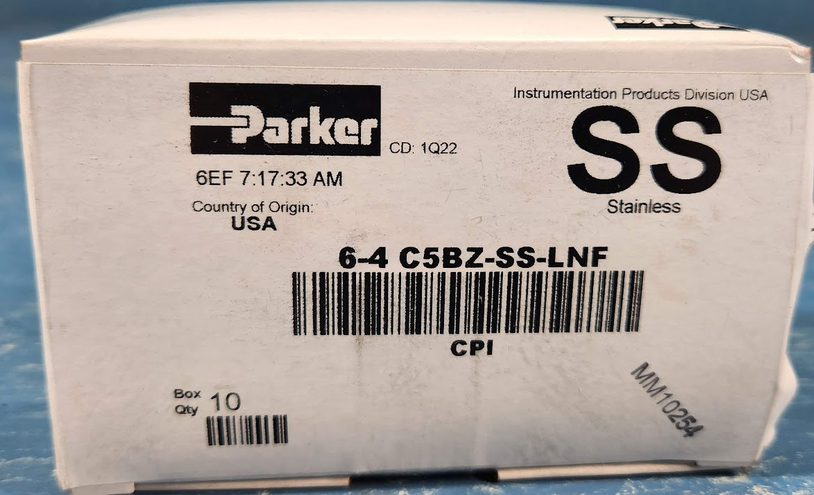 6-4-C5BZ-SS-LNF Parker Stainless Fitting 90 Degree Elbow Male O-Ring 3/8" (10) TEN PCS