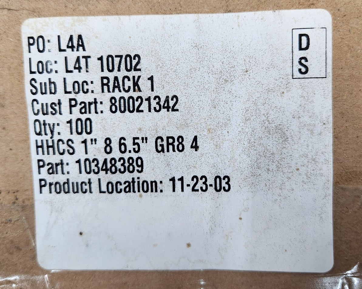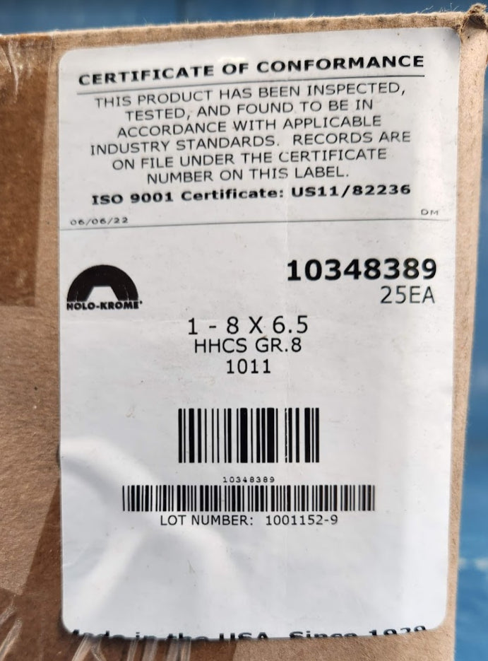80021342 Holo-Krome HHCS 1" 8 x 6.5 Grade 8 Hex Head Capscrew Bearing Bolt 25 PCS