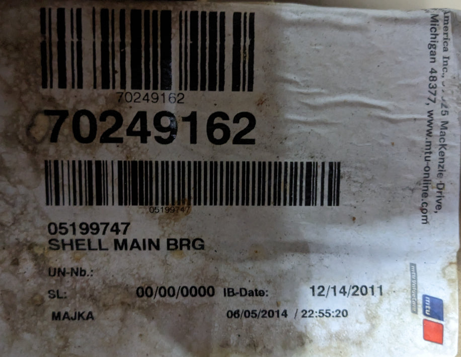 Engine Shell Main Bearing 0.020” Detroit Diesel 05199747 MTU Mahle 70249162