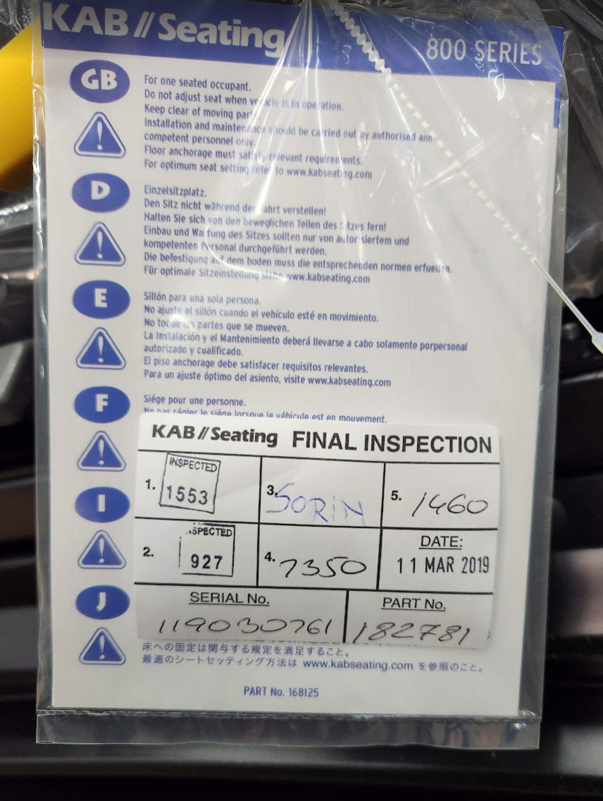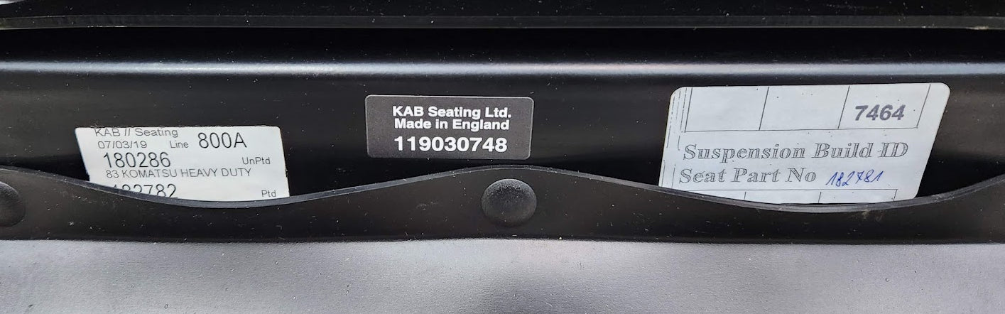 KAB Suspension Seat Model 800A 831K 83 Komatsu Heavy Duty Black Cloth