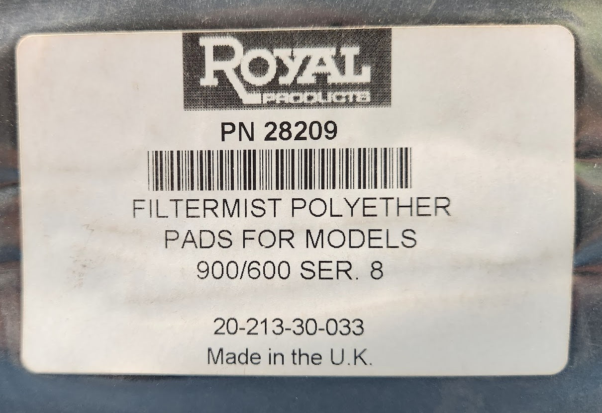Royal Products Drum Pad Drum Filtermist Polyether Pads for Models F-600 900