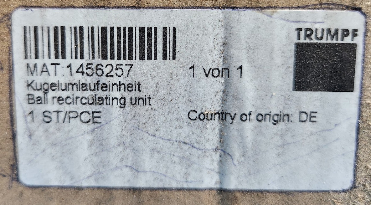 Trumpf Laser Ball Recirculating Unit For Y/Z Motor 1456257