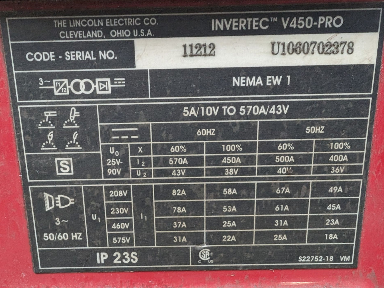 USED Lincoln Electric Invertec V450-PRO Welder with C type clamp