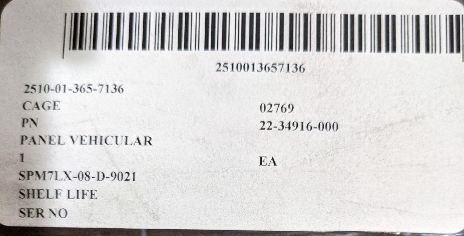 Vehicular Operation Panel 22-34916 Military 2510013657136