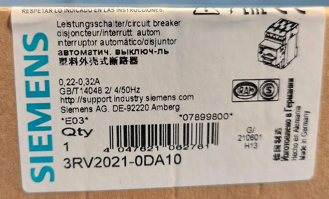 3RV2021-0DA10 Siemens Circuit Breaker Screw Connection 0.32A