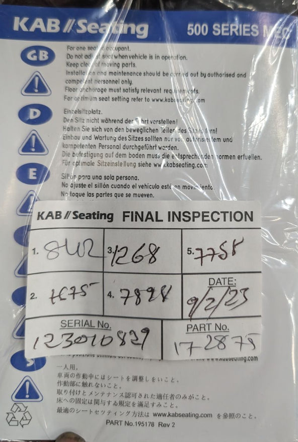 KAB 525P Black Vinyl Mechanical Suspension Construction Seat with Control Pods