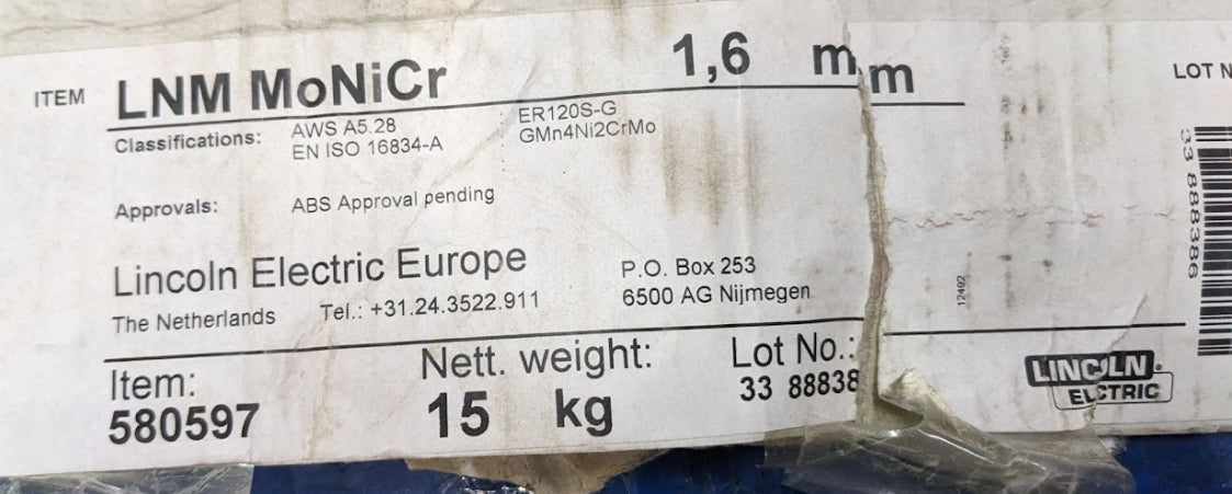 Lincoln Electric Solid MnMo Alloyed Mig Welding Wire 15Kg Spool 1.6 mm Dia