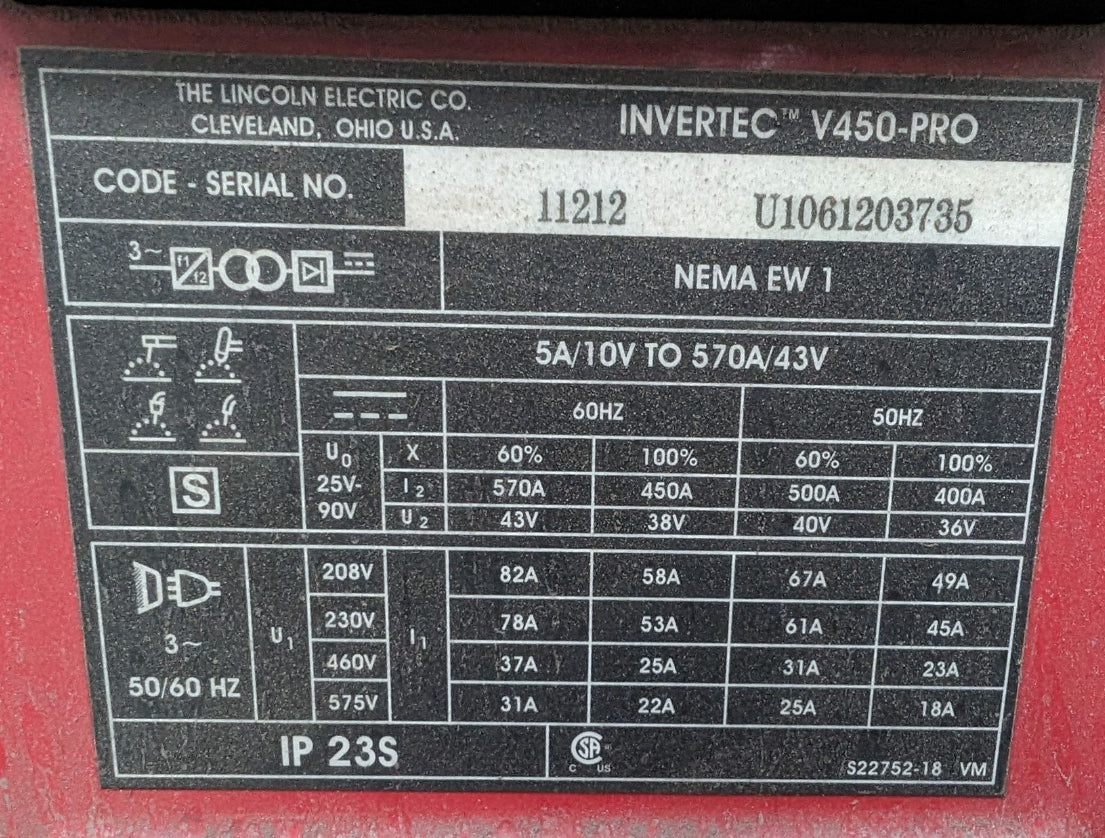 USED Lincoln Electric Invertec V450-PRO Welder with Needle Nose Clamp