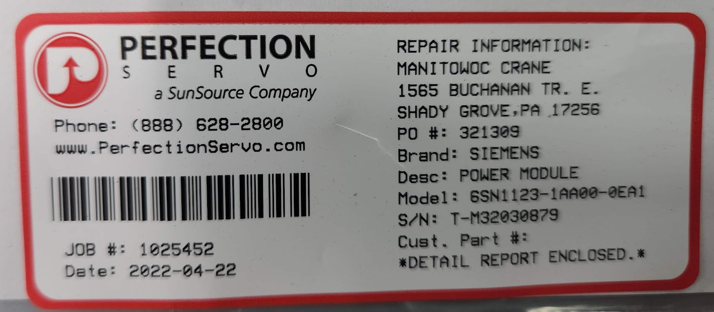 6SN1123-1AA00-0EA1 Seimens SIMODRIVE LT Power Module USED