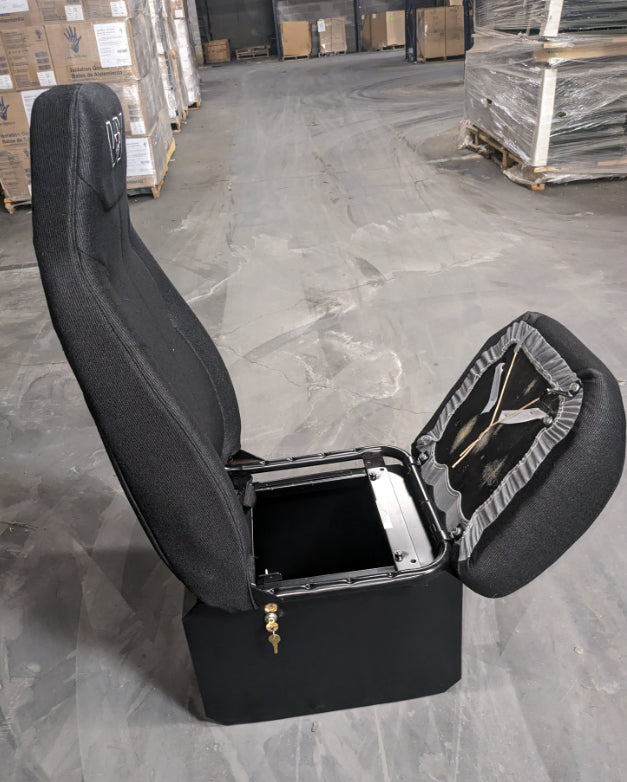 Bostrom Western Star T900F Truck Passenger Seat Fixed Suspension with Locked Tool Box High Back Black Cloth