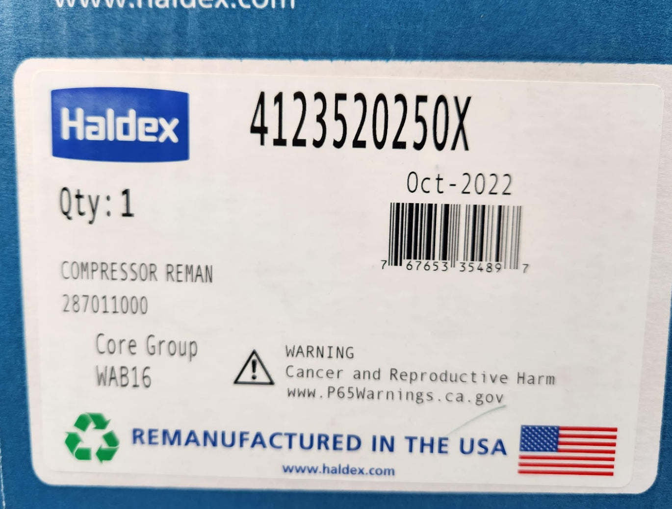 Haldex Remanufactured Compressor Wabco for Mercedes 4123520250X