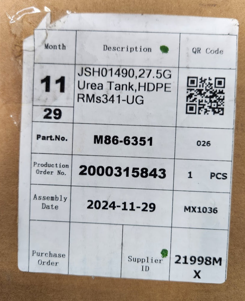 M86-6351 Diesel Exhaust Fluid DEF Medium Tank 27.5 Gallon Paccar Kenworth Peterbilt