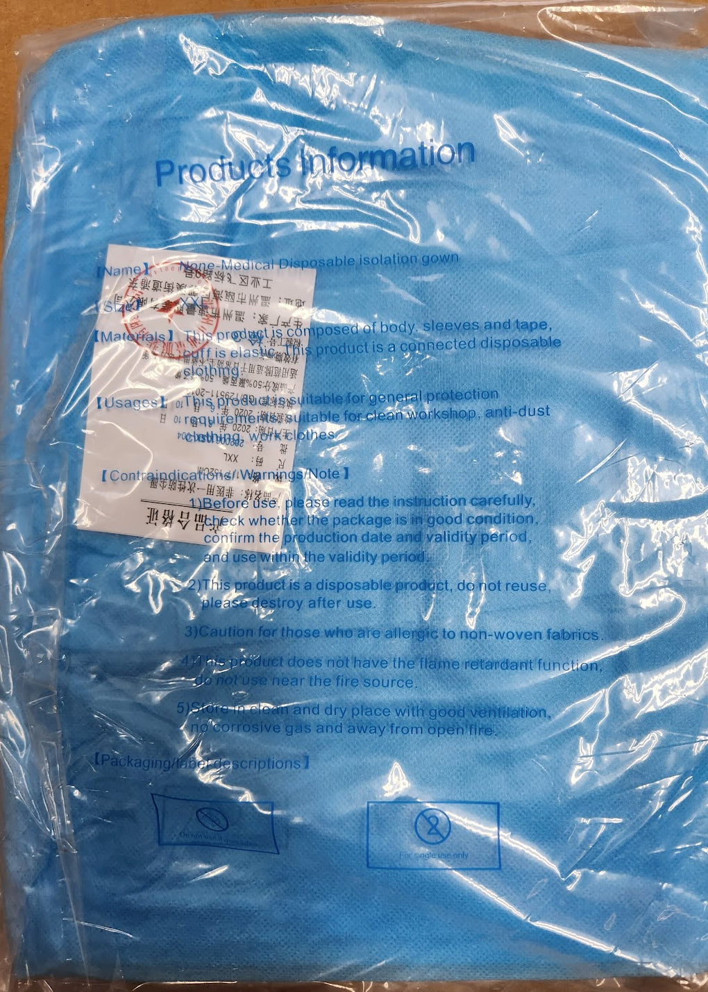 Non Medical Isolation Gown Blue Elastic Cuff XXL Atria CASE of 70 PCS