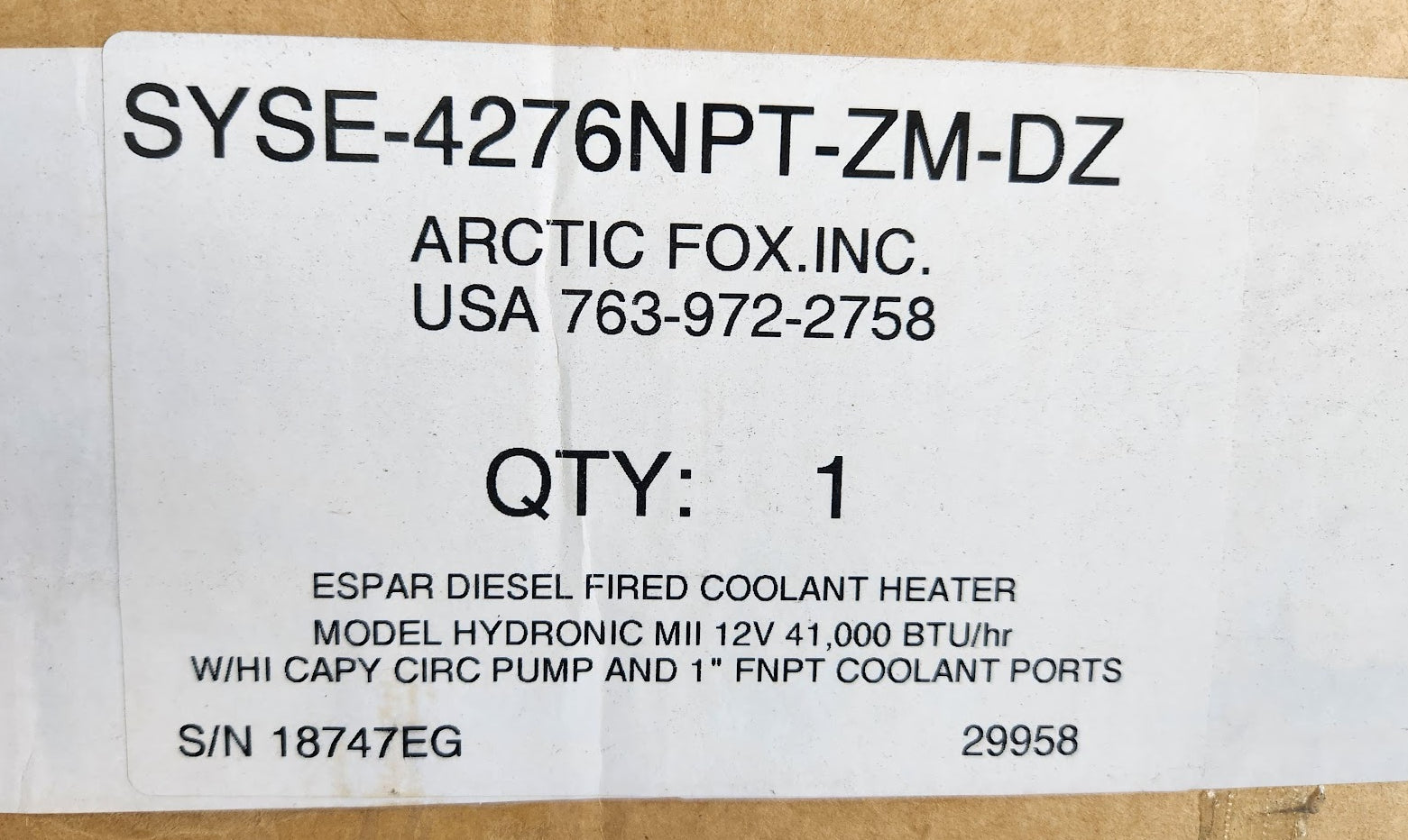 SYSE-4276NPT-ZM-DZ Arctic Fox Espar Diesel Fired Coolant Heater Kit 41,000 BTU 12,000 Watts