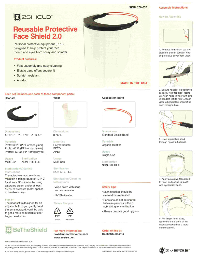 Zverse Zshield Health Reusable Protective Face Shield 2.0 Case of 100