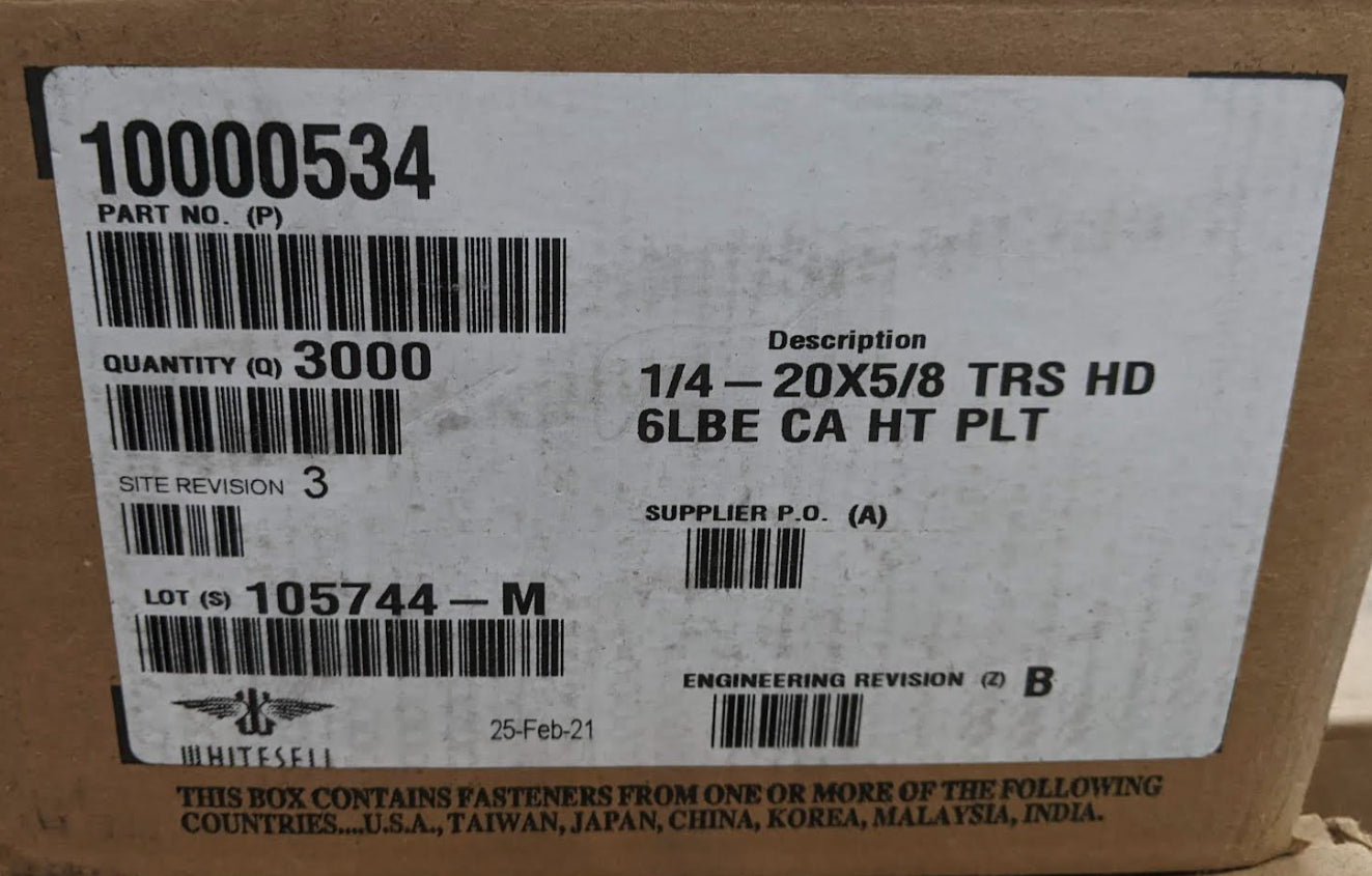 1/4-20 X 5/8 Torx Six Lobe Button Head Steel Truss Fastener Bolt Screw BOX of (3000)