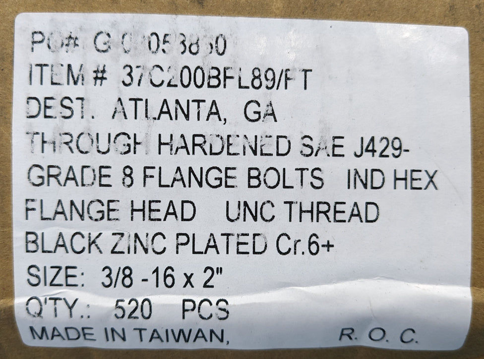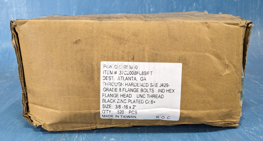 3/8 - 16 x 2" Grade 8 Flange Hex Head Bolt Black Zinc Plated - BOX of 100