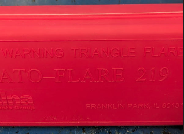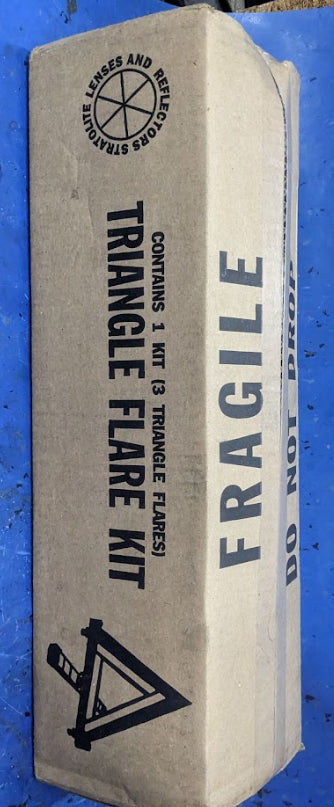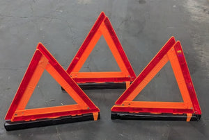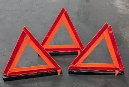 Triangle warning kits include warning triangles for motorist safety. Placed behind a disabled vehicle, the triangles can be seen by passing traffic in dark or poor visibility conditions.