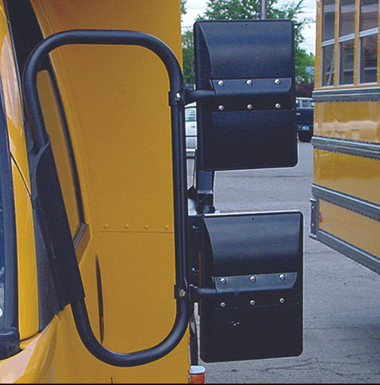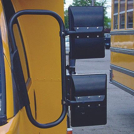 Rosco's cost effective and efficient Double Nickels systems are hand-adjustable, compact, and practical.  The popular Double Nickels™ system has served the industry for over 15 years with thousands of original installations still in service. This solid veteran provides a compact, hand-adjustable view to the rear and along the sides of the bus.