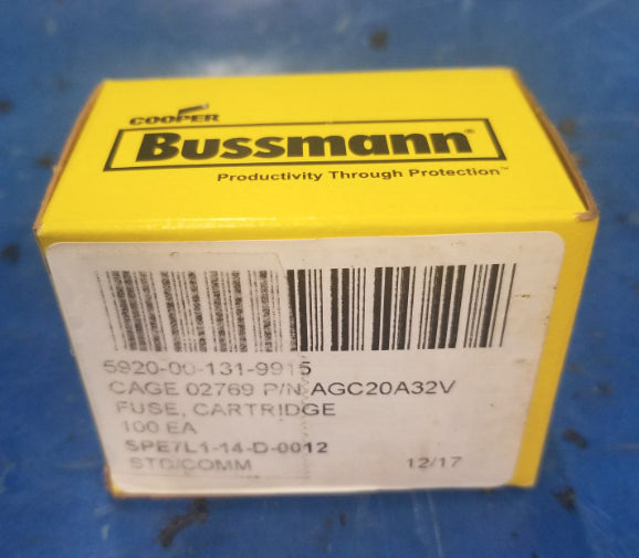 BOX of 100 Bussman BUSS AGC20A Cartridge Fuse Glass Fuse Fast Acting AGC20A32V
