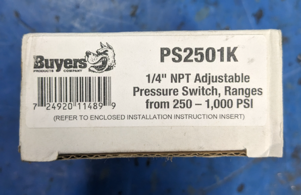 Buyers PS2501K 1/4 Inch NPT Adjustable Hydraulic Pressure Switch 250-1000 PSI