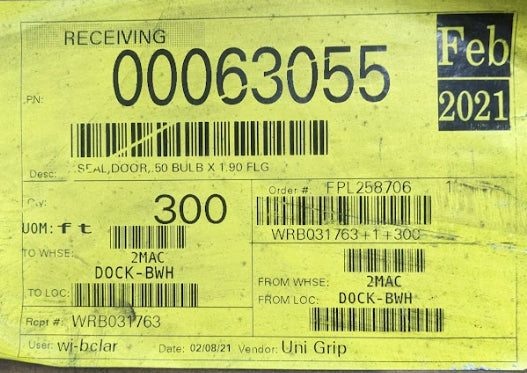 Door Seal Weatherstrip 300' Roll Box 50 Bulb X 1.90 FLG Blue Bird 00063055