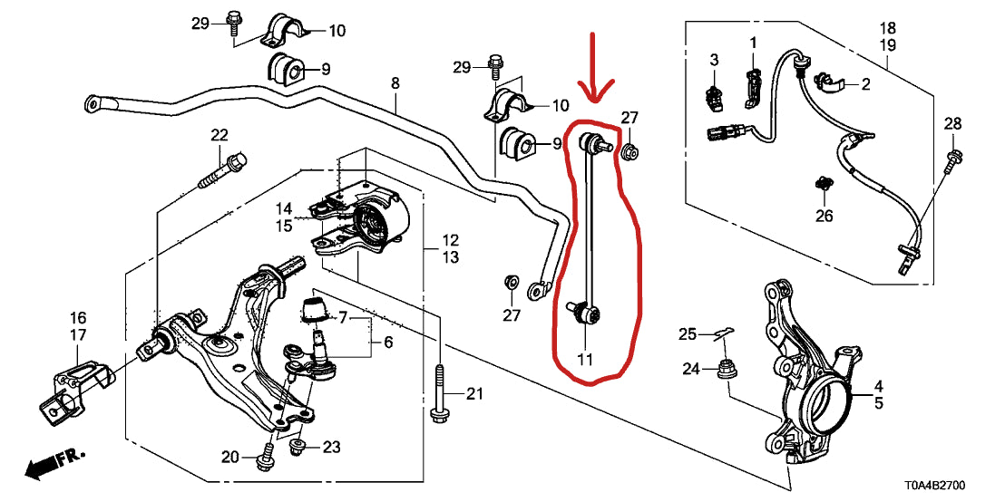 Genuine Honda Link Front Stabilizer Sway Bar End Link 51320-T0A-A01 C-RV 2012-2016