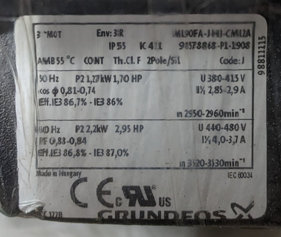This is a brand new surplus pump motor that we received from one of our suppliers. I don’t know too much about it, but all specs below are right off of the Grundfos website.