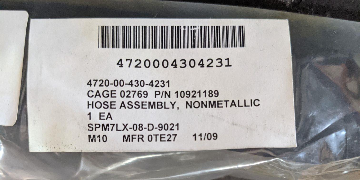 Hose Assembly Flexible Tubing 10921189 Eaton Aeroquip 276614-20-16S34 NOS Military