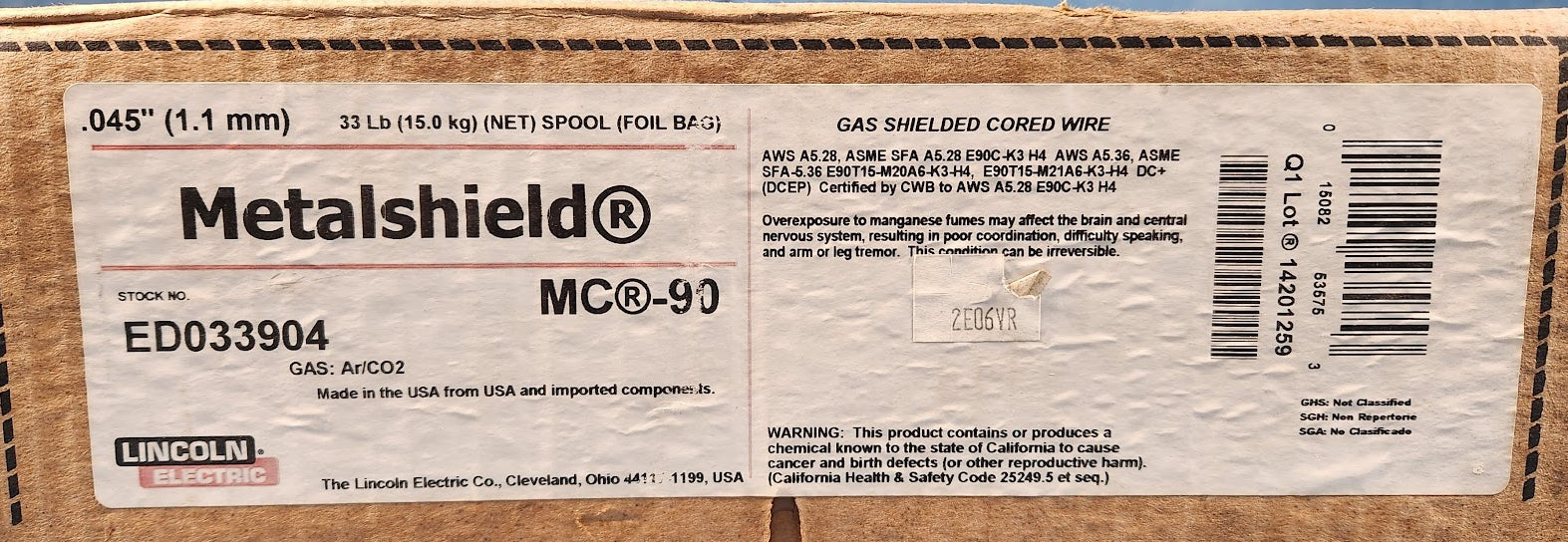 Lincoln ED033904 .045" Metalshield MC-90 Metal-Cored Gas-Shielded Welding Wire 33lb Spool