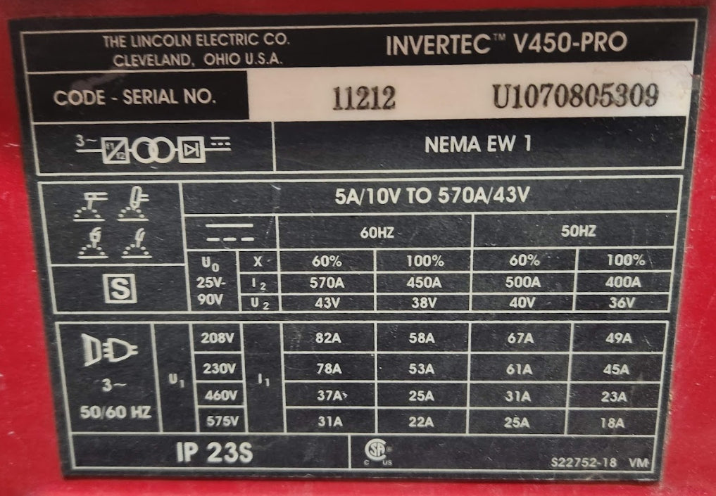 Lincoln Electric Invertec V450-PRO Welder w/Rolling Cart USED