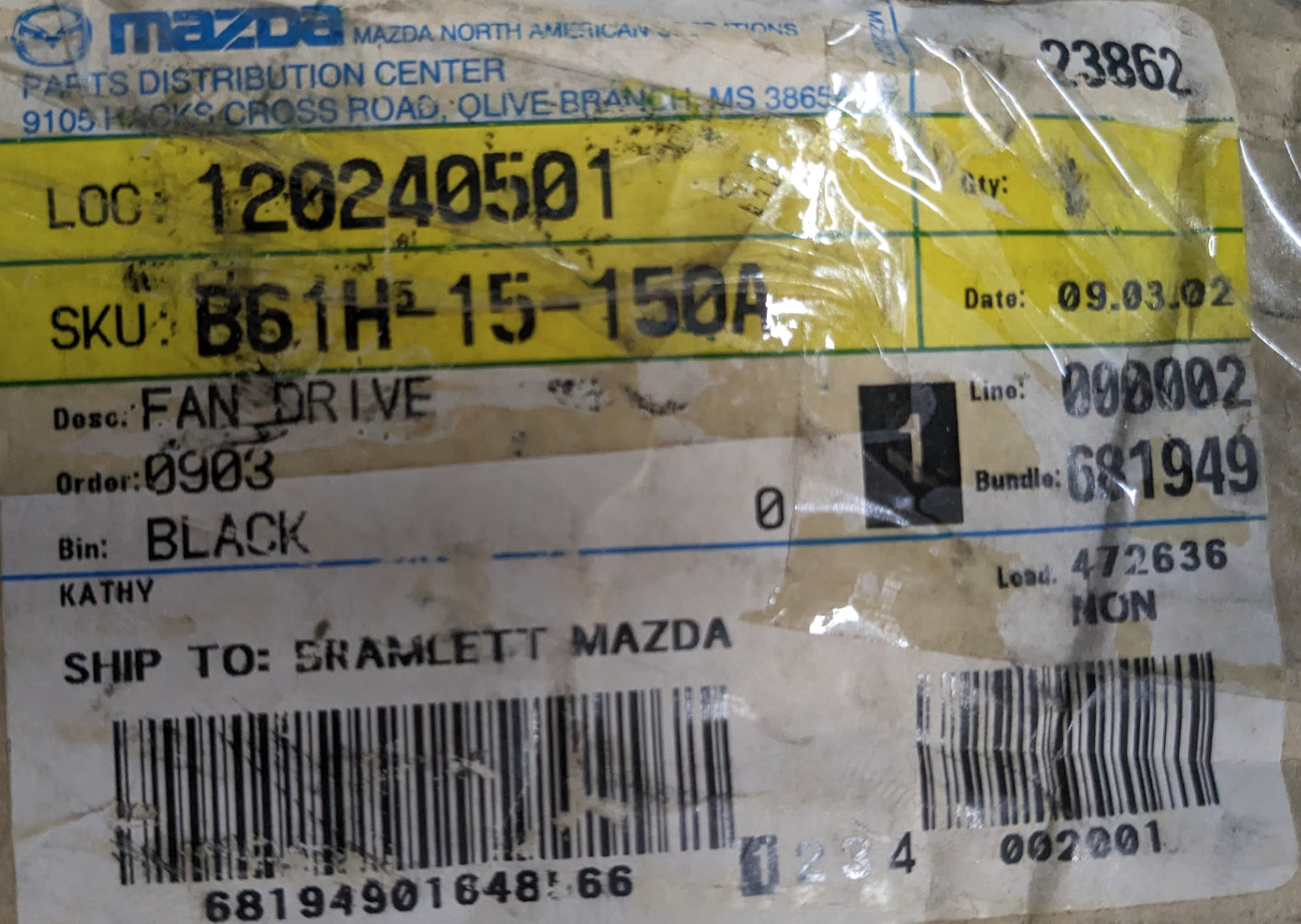 Mazda Motor Fan Drive 12V B61H-15-150A Protege 323