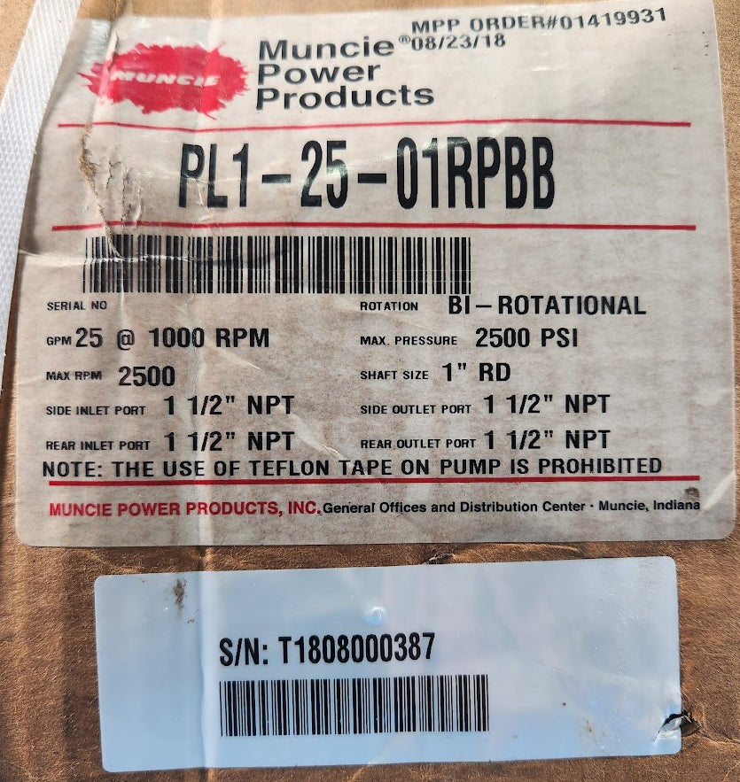 Muncie Power PL Series Hydraulic Gear Pump Motor PL1-25-01RPBB