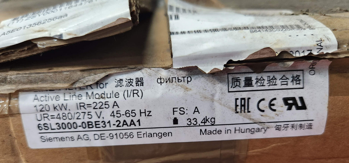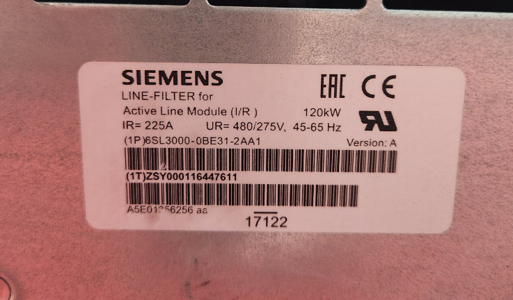 Siemens 6SL3000-0BE31-2AA1 120 kW Line Filter Active Line Module Noise