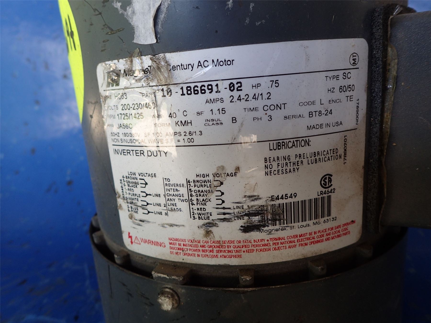 Used Magnatek Century AC Motor 10-186691-02 .75HP 200-230/460V